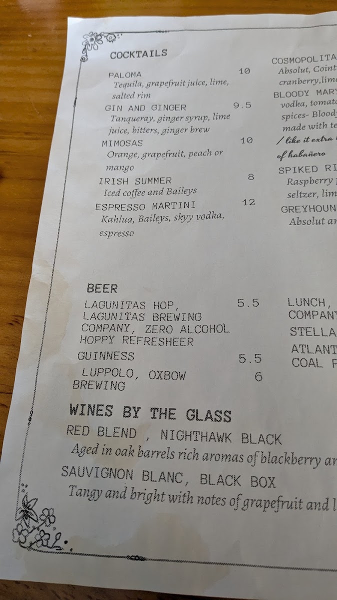 - Great Wine ListYes