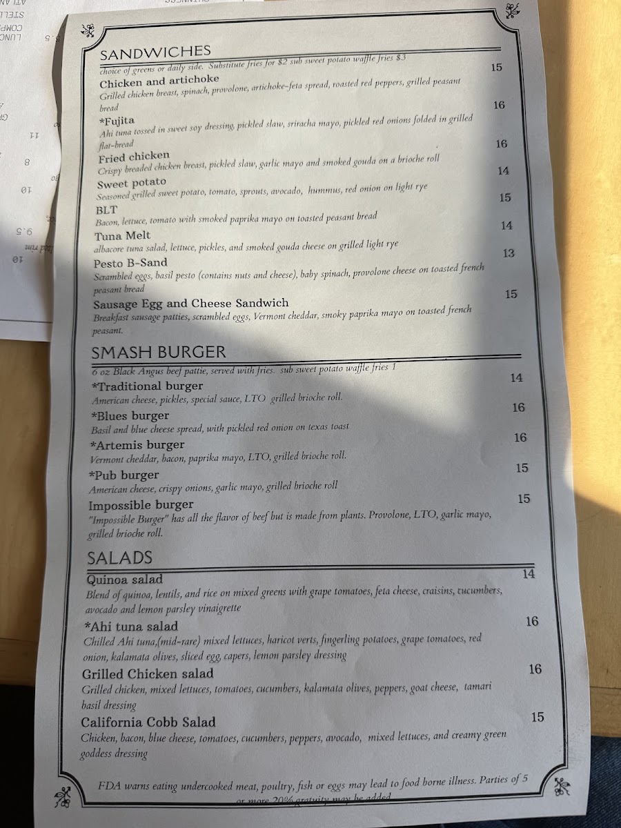 We had a really good lunch here with great food and a comfortable welcoming atmosphere. We ate here on a Thursday in late fall at just before 12. The restaurant wasn’t busy when we arrived but filled up before we left. Our server was very friendly with helpful suggestions. Our entrees included the Fujita, ahi tuna wrap (pita, not tortilla) with sweet soy dressing, slaw, and sriracha mayo. The flavors were wonderful - bold, layered, and complementary, but I usually prefer light dressing on my salads, and I might request that next time if I were to order this wrap again. The curry pasta salad side was also very tasty. We also had the grilled chicken sandwich, which was extra delicious with the sandwich grilled along with the chicken the with spinach artichoke feta spread filling. Overall, this was a terrific lunch and I hope we get to visit the Artemesia Cafe again soon!